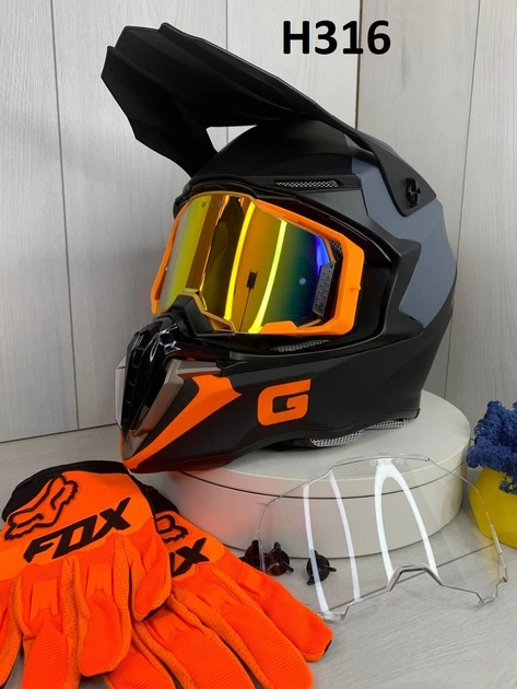 Мотошолом ендуро H316L для мотокросу та квадроциклу + КОМПЛЕКТ: окуляри 100 та рукавиці FOX