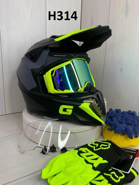 Мотошолом ендуро H314M для мотокросу та квадроциклу + КОМПЛЕКТ: окуляри 100 та рукавиці FOX
