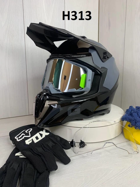 Мотошолом ендуро H313M для мотокросу та квадроциклу + КОМПЛЕКТ: окуляри 100 та рукавиці FOX