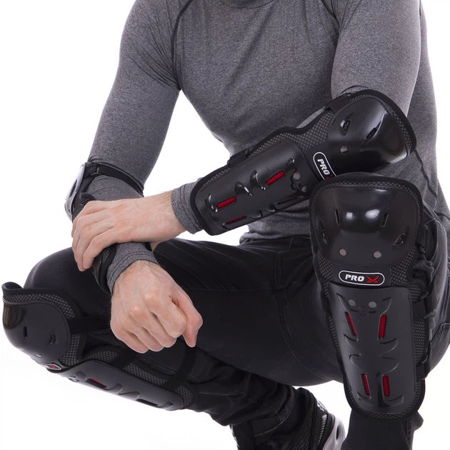 Комплект мотозахисту (коліно, гомілка + передпліччя, лікоть) 4шт PRO-BIKER (пластик, PL, чорний) (P-09)