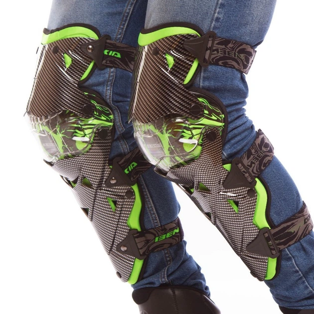 Мотозахист (коліно, гомілка) 2шт Carbon BENKIA (пластик, PL, Чорний-зелений) (PT154Чорно-зелений)