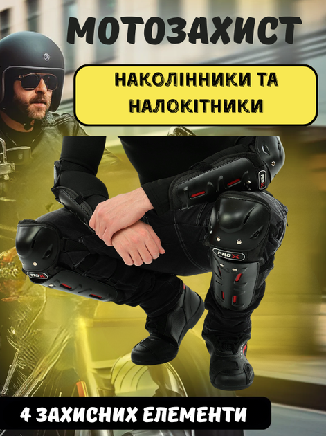 Комплект мотозахисту (коліно, гомілка + передпліччя, лікоть) 4шт -BIKER X (Поліестер, ABS-пластик, метал, чорний) (HJ-01)