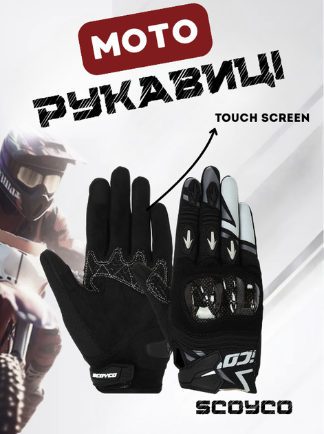 Моторукавички SCOYCO MC137 (PL, синтетич. шкіра, еластан, розмір M, колір чорний-сірий)
