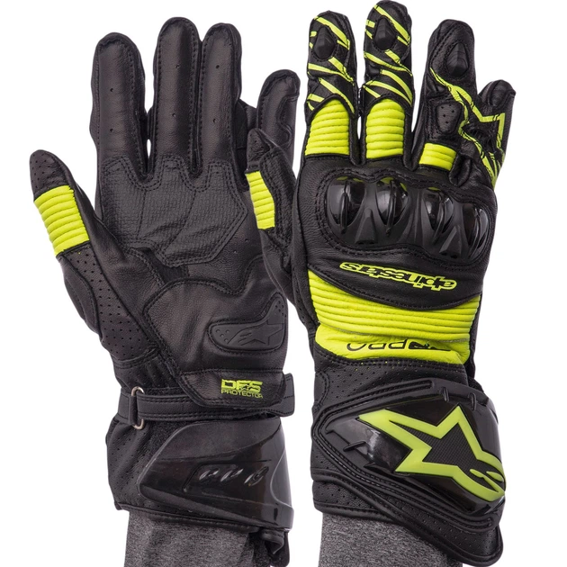 Моторукавички гоночні Alpinestar (Шкіра, розмір L, Чорний-салатовий) (AX-19Чорно-салатовийL)