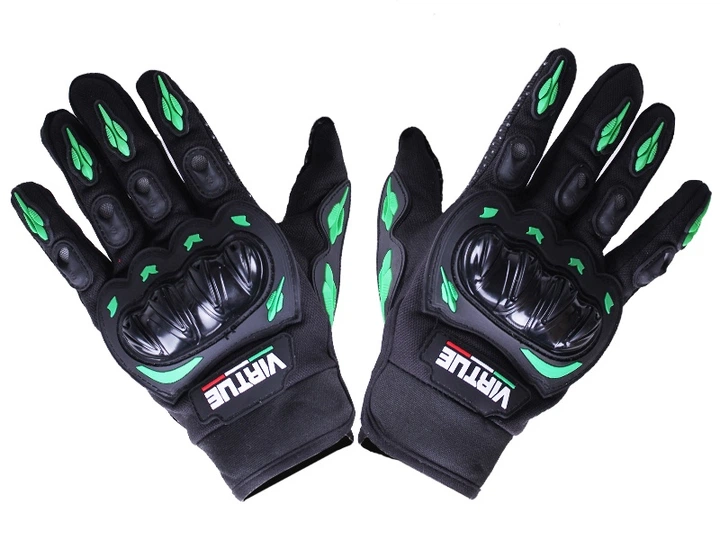 Моторукавички всесезонні (короткі) VIRTUE поліестер карбон на зеленій липучці