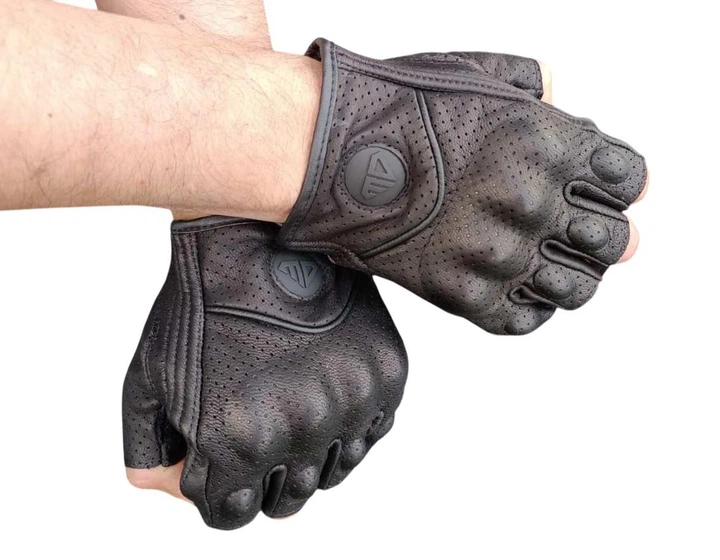 Рукавички без пальців М чорні шкіряні мото рукавиці тип 2