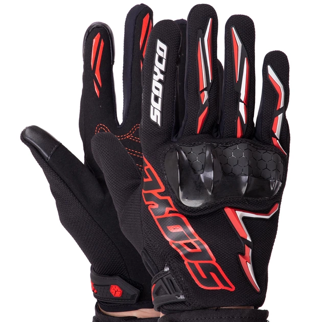 Моторукавички SCOYCO (Поліестер, шкіра, розмір XL, Чорно-Червоний) (MC122Чорно-ЧервонийXL)