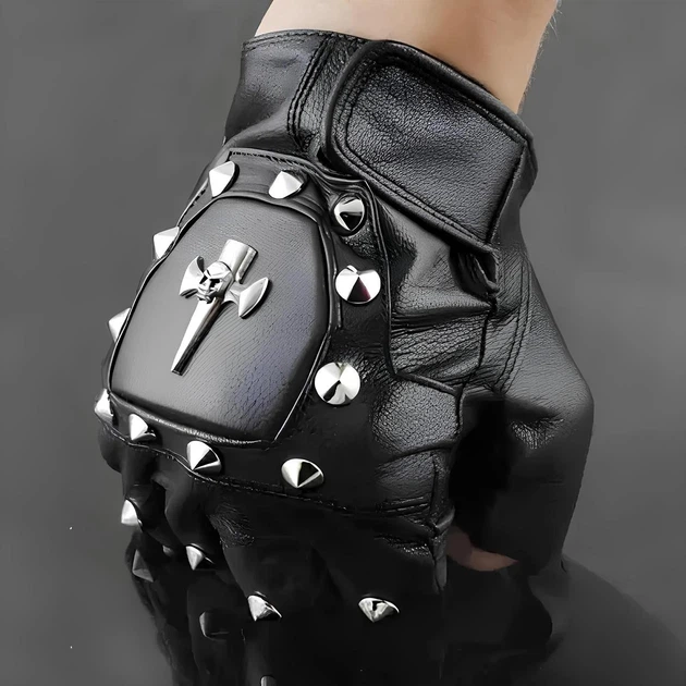 Байкерські шкіряні рукавички без пальців RESTEQ із заклепками - рукавички для мотоцикла, тренувань та стилю