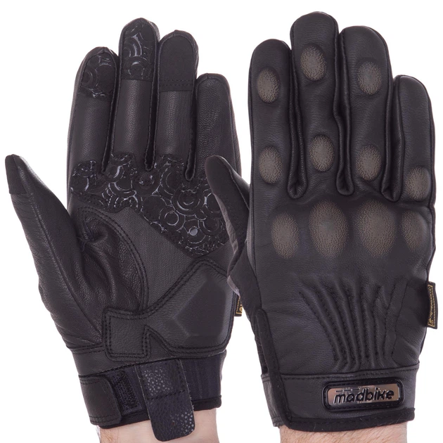 Моторукавички MADBIKE (Шкіра, розмір L, чорний) (MAD-59L)