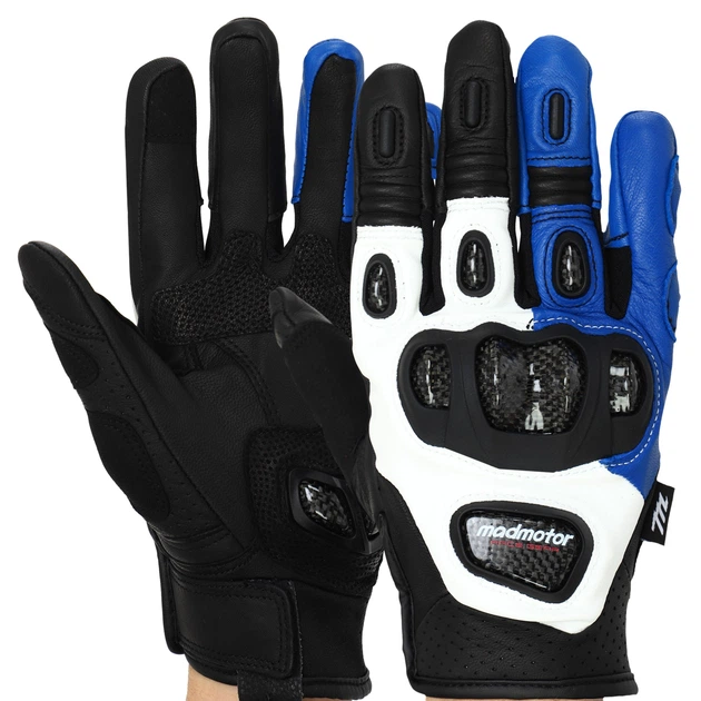 Моторукавички MADMOTOR MT-22 (шкіра, super fabric, поліестер, розмір L, колір чорний-синій)