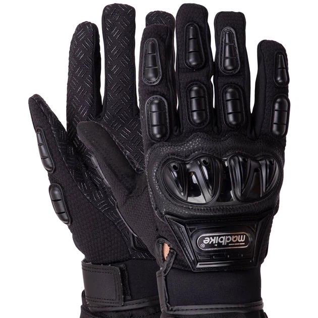 Моторукавички із закритими пальцями із захистом пальців та кісточок Madbike Racing MAD-10C розмір L Black