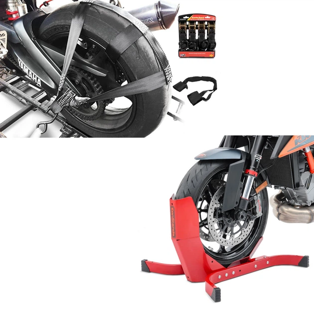 Комплект: ремень для кріплення заднього колеса та керма з 4 ремнями з храповим механізмом + упор для мотоцикла Easy-Plus під