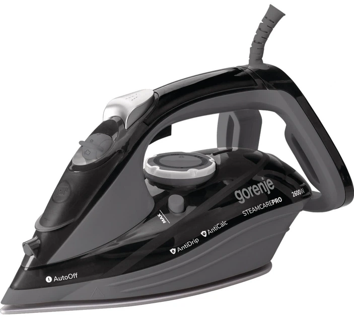 Праска Gorenje, 2600Вт, 350мл, паровий удар 95гр, верт. відпарювання, антинакип, автовідключення, керам. підошва, сіро-чорни