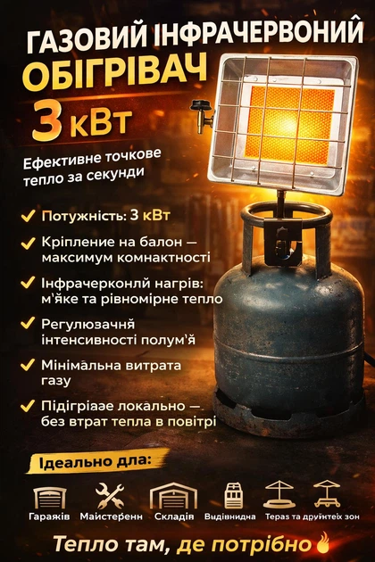 Інфрачервоний газовий обігрівач з термопарою Вулкан 3200 Вт