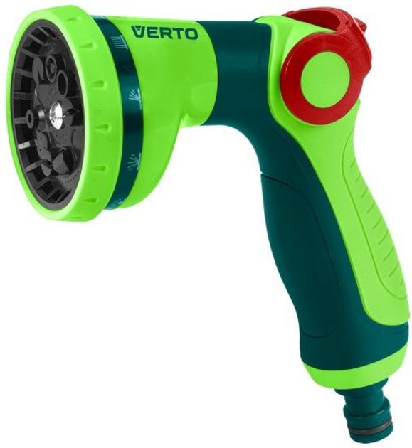 Зрошувач ручний Verto, пістолетний, 1/2"-3/4", 8 функцій, плавне регулювання напору води великим пальцем, тримач двокомпонен