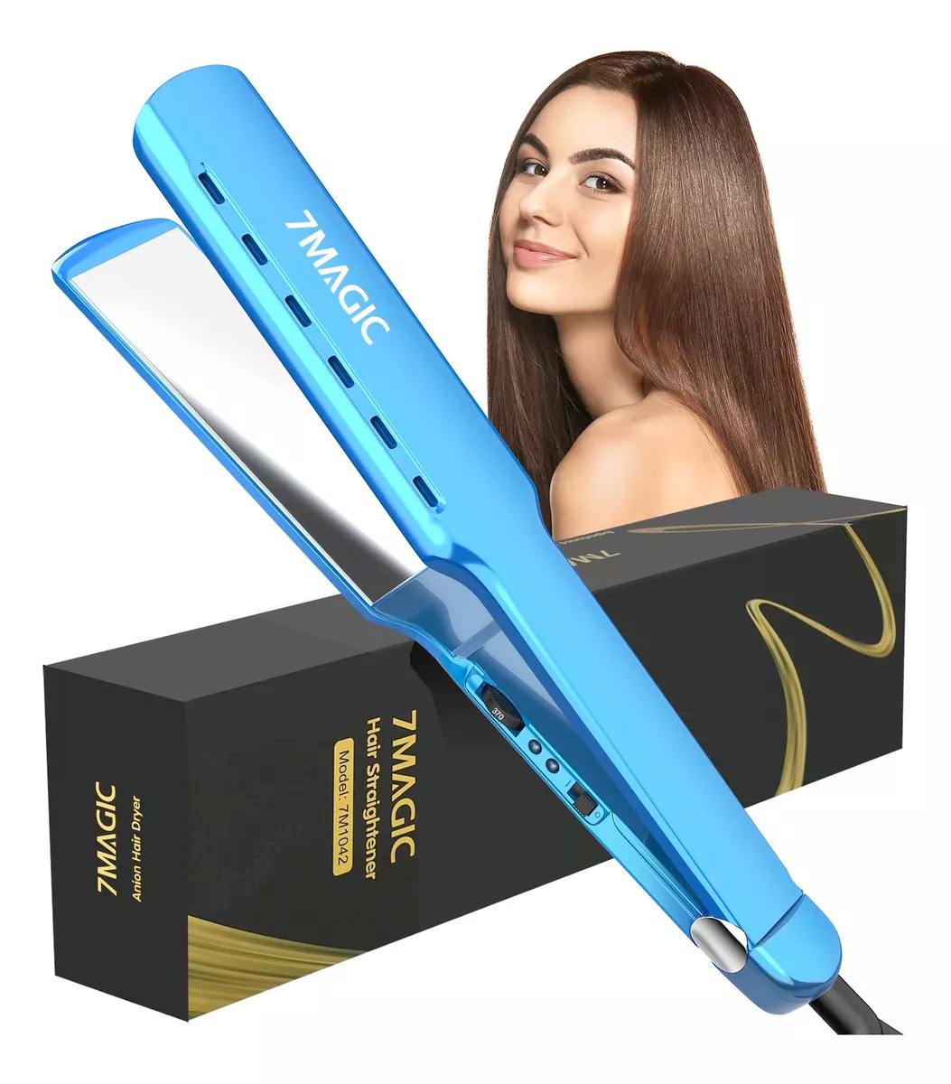 Щипці для укладання волосся 7magic 7M1042 Blue Професійний випрямляч для волосся 7magic ідеально підходить для всіх типів волосся, оскільки має 5 температурних режимів від 130 до 240°C. Завдяки титановим, керамічним та турмаліновим пластинам ви зможете швидко та безпечно випрямити волосся. Крім того, його іонна функція допомагає запечатувати кератин, зберігаючи волосся м'яким і блискучим