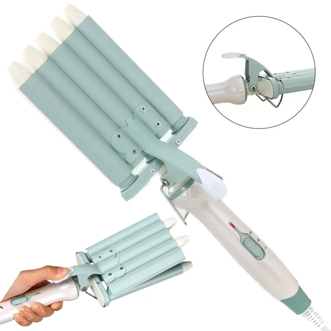 Плойка для волосся VGR, з керамічним покриттям для завивки волосся три хвилі 90 Вт Green