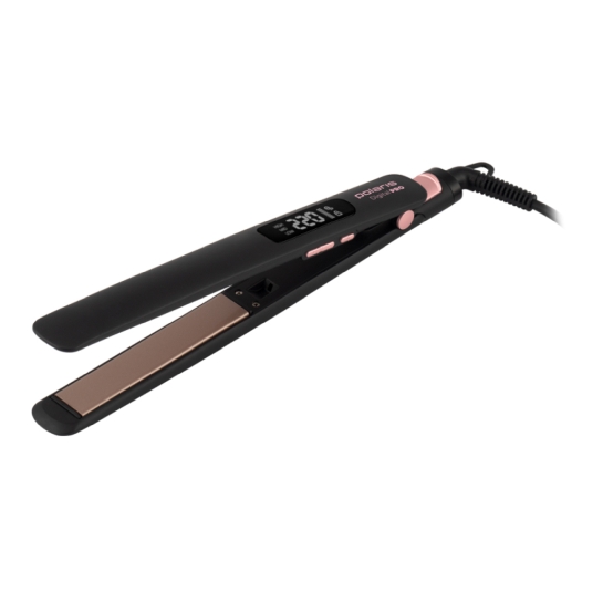ключення - є;Колір - чорний;Особливості - дисплей, петля для підвішування, поворот шнура на 360°;Країна виготовлення - Китай;Регулювання температури - 100°C - 220°C;Час нагріву - 15 с;Додатково - розмір пластин ширина 25 мм, довжина 120 мм;Довжина шнура - 2;Розміри - 2,9 х 3,3 х 30 см;Вага - 0,317;