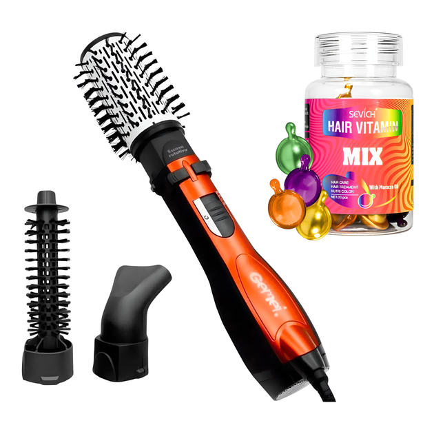 Комплект фен щітка стайлер для сушіння укладання волосся з набором відновлювальних капсул для кінчиків волосся 30 штук (4801