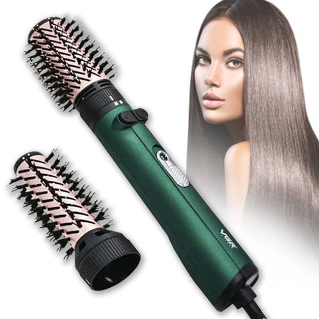 Фен-щітка випрямляч електричний гребінець з насадками V 49B повітряний стайлер для укладання волосся 1200W, Зелений