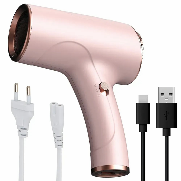 Акумуляторний фен з функцією холодного і гарячого повітря фен безпровідний Рожевий (PN793)