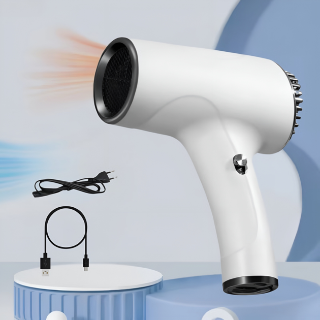 Акумуляторний фен з функцією холодного і гарячого повітря фен безпровыдний Білий (TR667)