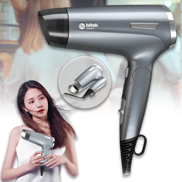 Складаний фен для волосся BITEK BT-464 на 2 швидкості та 3 температурні режими 2400 Вт