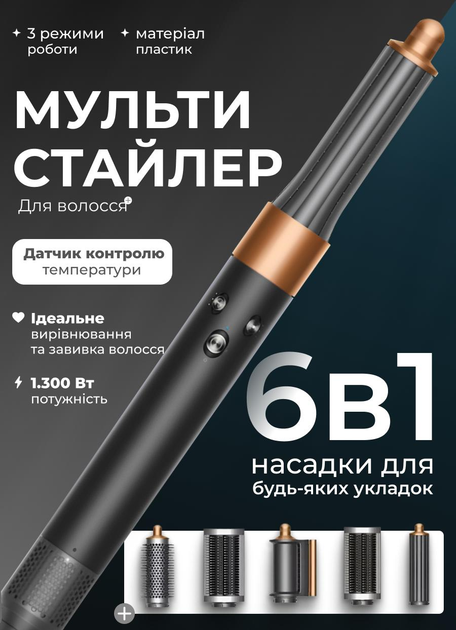 Фен мультистайлер для волосся з насадками 6 в 1 Airap браш фен стайлер для накрутки волосся 1300 Вт Cірий