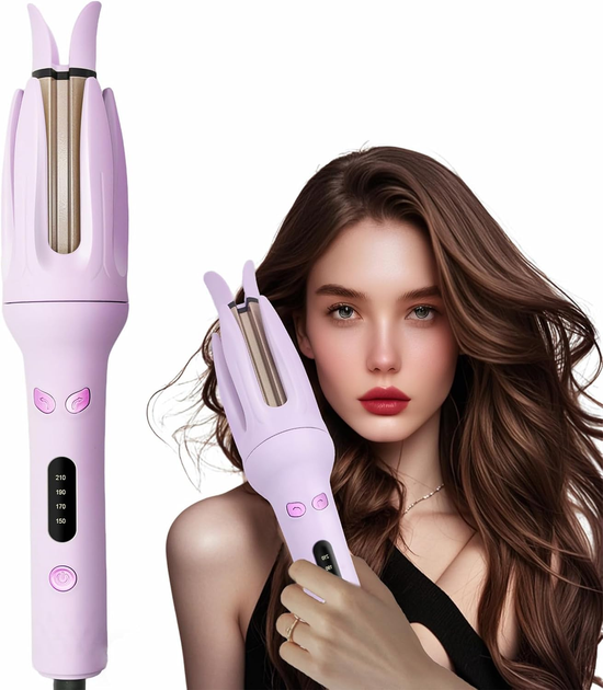 Автоматична плойка, що обертається UKLISS, зі швидким нагріванням і 4 режимами температури для укладання волосся, Фіолетова