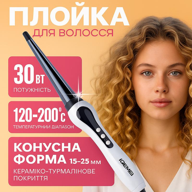 Конусна Плойка для волосся Gemei Gm 403 Локон Плойка для завивки волосся Біла