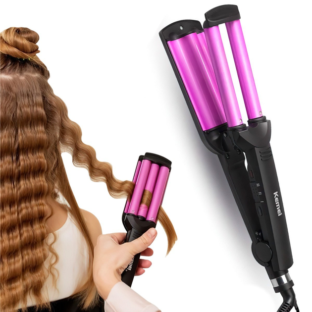 Плойка для волосся потрійна 55W Kemei плойка 3 хвилі - стайлер для локонів