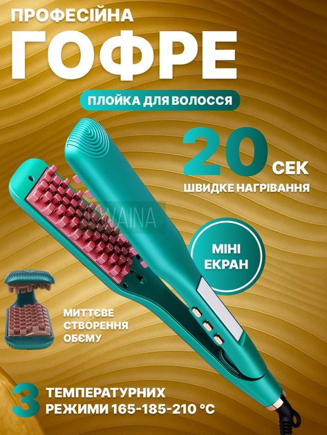 Плойка прасування гофре для прикореневого об'єму волосся, кукурудза для бігуді для об'ємної зачіски, вафля, Зелений