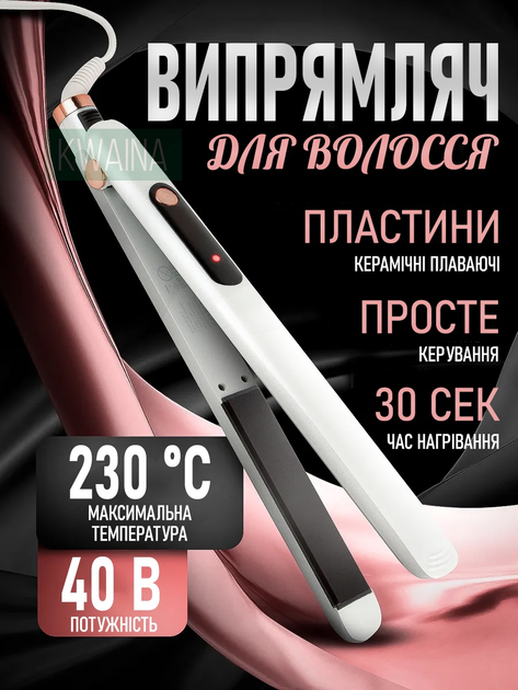 Плойка прасок для волосся з керамічними пластинами та регулюванням температури до 230 °C, білий