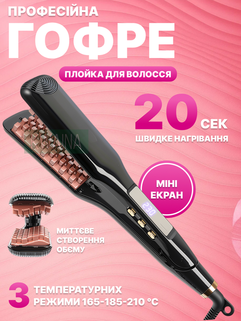 Плойка прасування гофре для прикореневого об'єму волосся, бігуді кукурудза для об'ємної зачіски, вафля,