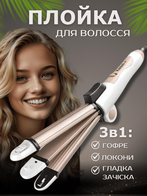 Плойка для волосся щипці Kemei праска з гофре стайлер випрямляч жіночий для локонів укладання та прикореневого об'єму 3 в 1