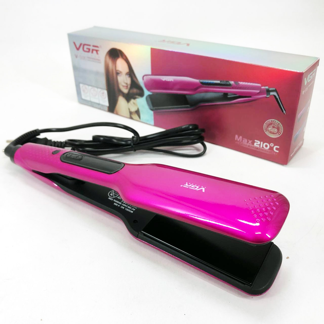 Широка праска для випрямлення волосся VGR V-506 потужністю 55 Вт з LED дисплеєм 130-210 градусів рожевий