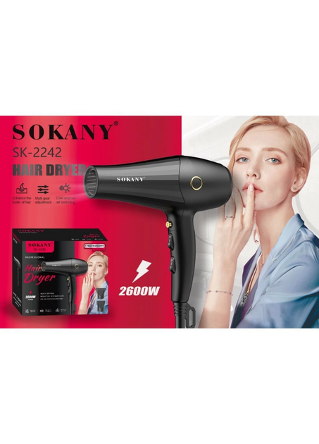 Професійний фен для сушіння волосся Sokany з концентратором 2600Вт, холодне обдування, 2 швидкості 3 режими
