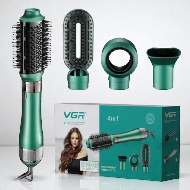 Фен-щітка-випрямляч 4 в 1 VGR з іонізацією та захистом від перегріву для домашньої та салонної укладки, Зелена (394)