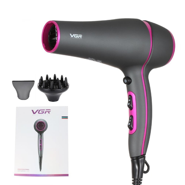 Фен для укладання та сушіння волосся VGR з насадками вузьким концентратором гребінцем дифузором з холодним повітрям, 2200W