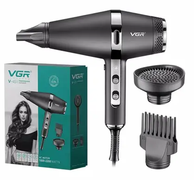 Професійний фен VGR для сушіння та укладання волосся з негативними іонами з 3 насадками, Електричний фен з холодним обдуванн