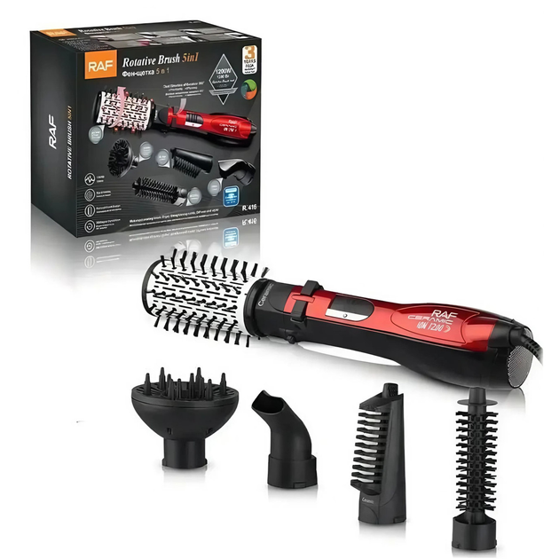 Фен-щітка для сушіння та укладання волосся RAF R-416 5 в 1 з насадками 1200 Вт 9767