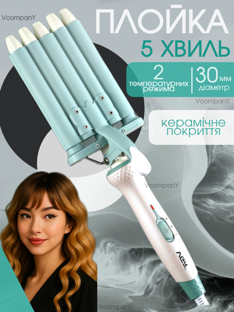 Плойка для волос хвилі з керамічним покриттям плойка для завивки волосся п'ять хвиль 90 Вт