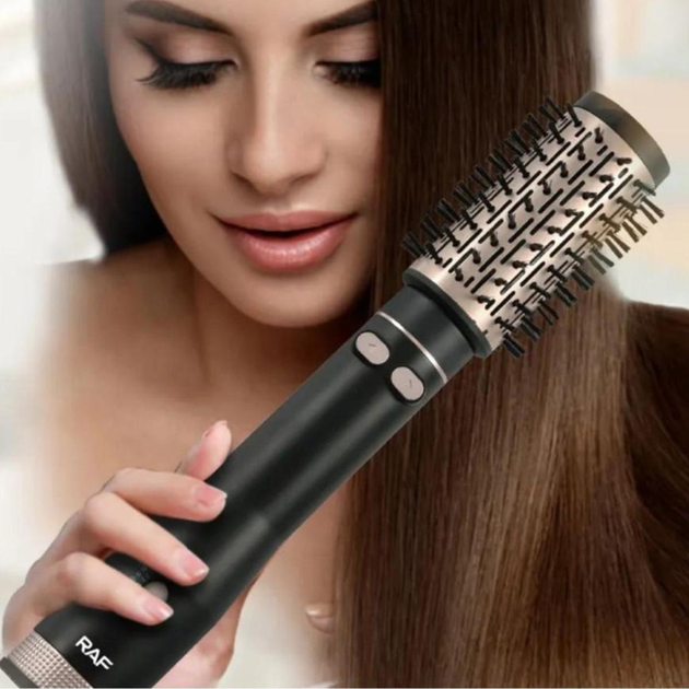 Фен-щітка для волосся з обертанням і 2 насадками RAF 1000 Вт, браш для сушіння, укладання та завивки з 3 температурними режи