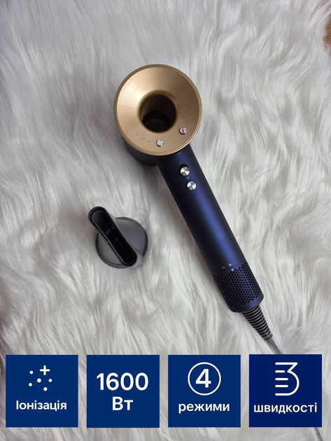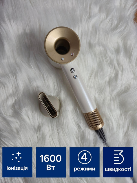 Фен для волосся Super Hair Dryer 1 насадка 1600 ВТ Білий із золотом