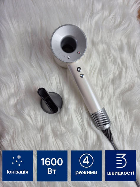Фен для волосся Super Hair Dryer 1 насадка 1600 ВТ Білий зі світло-сірим