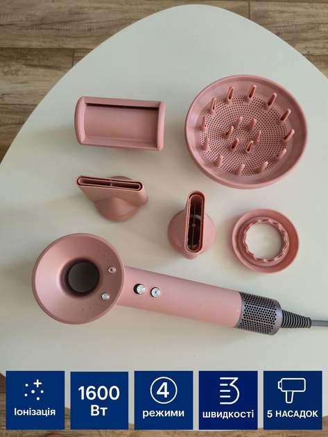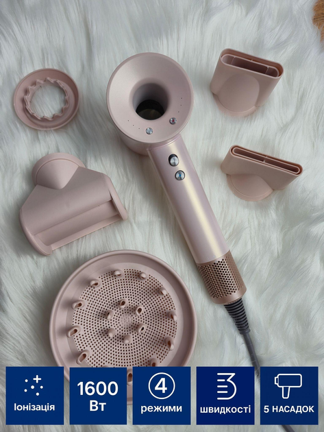 Фен для волосся Super Hair Dryer 5 насадок 1600 ВТ Розовий (світлий)
