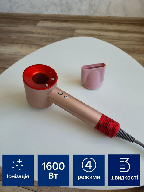Фен для волосся Super Hair Dryer 1 насадка 1600 ВТ Розовий з червоним
