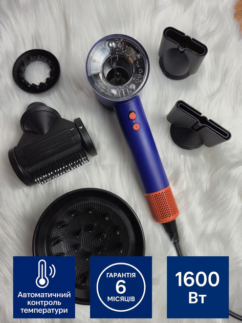 Фен для волосся Super Hair Dryer 5 насадок 1600 ВТ Синій з прозорим