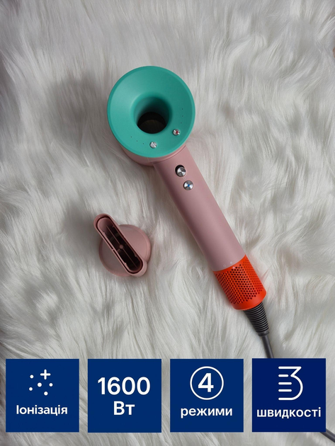 Фен для волосся Super Hair Dryer 1 насадка 1600 ВТ Розовий з м'ятним