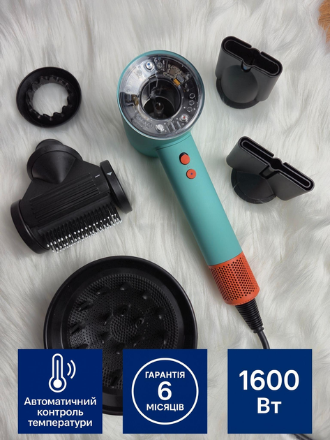 Фен для волосся Super Hair Dryer 5 насадок 1600 ВТ М'ятний з прозорим
